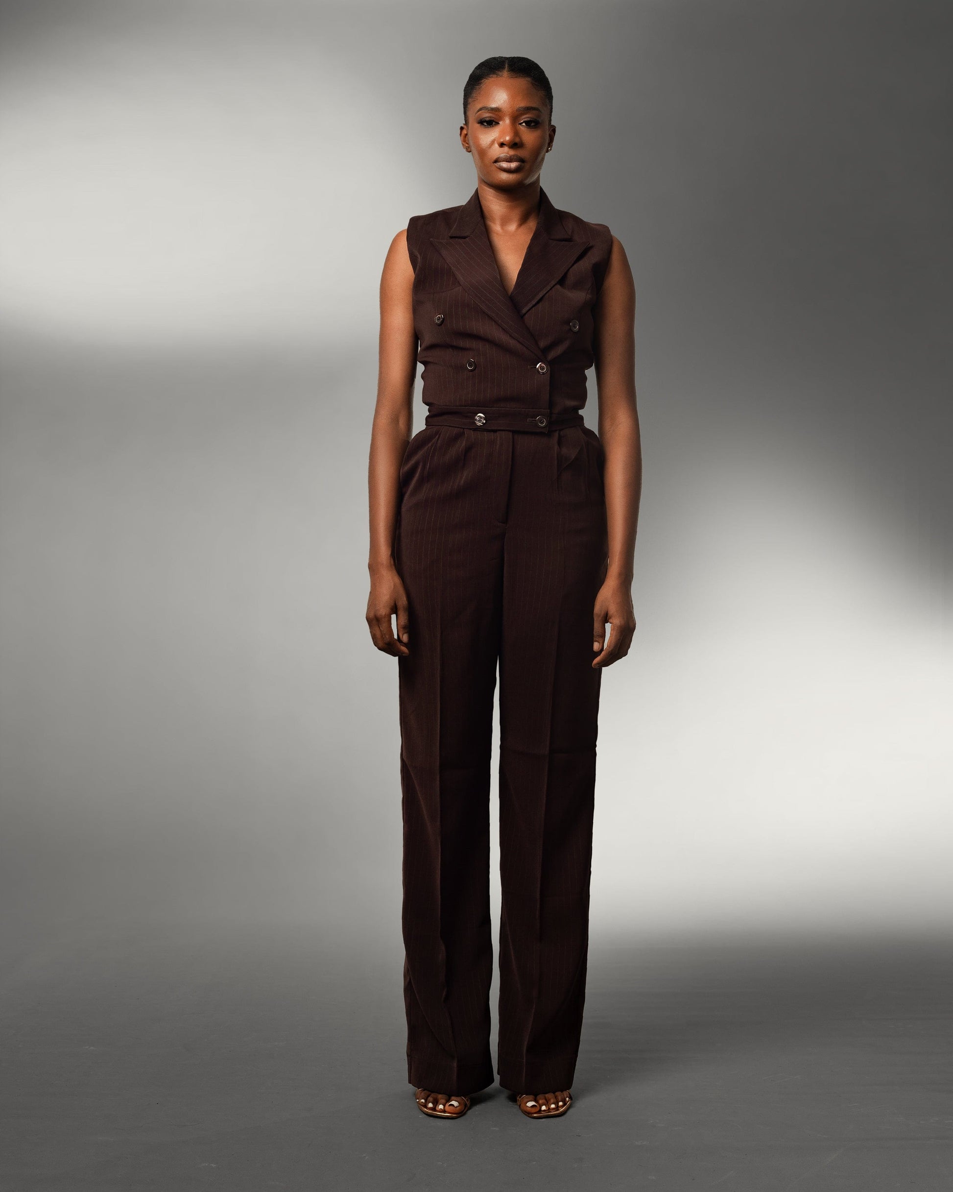 The KARA DOUBLE BREASTED Blazer Is a High waist-length, Sleeveless, double breasted jacket. A chic and versatile addition to your wardrobe. This contemporary piece effortlessly combines the classic double-breasted design with a modern sleeveless silhouette, making it perfect for both professional and casual settings. Tailored to perfection, the jacket exudes sophistication, while its sleeveless style adds a touch of contemporary flair. Perfectly paired with the KARA SHORTS or KARA PANTS