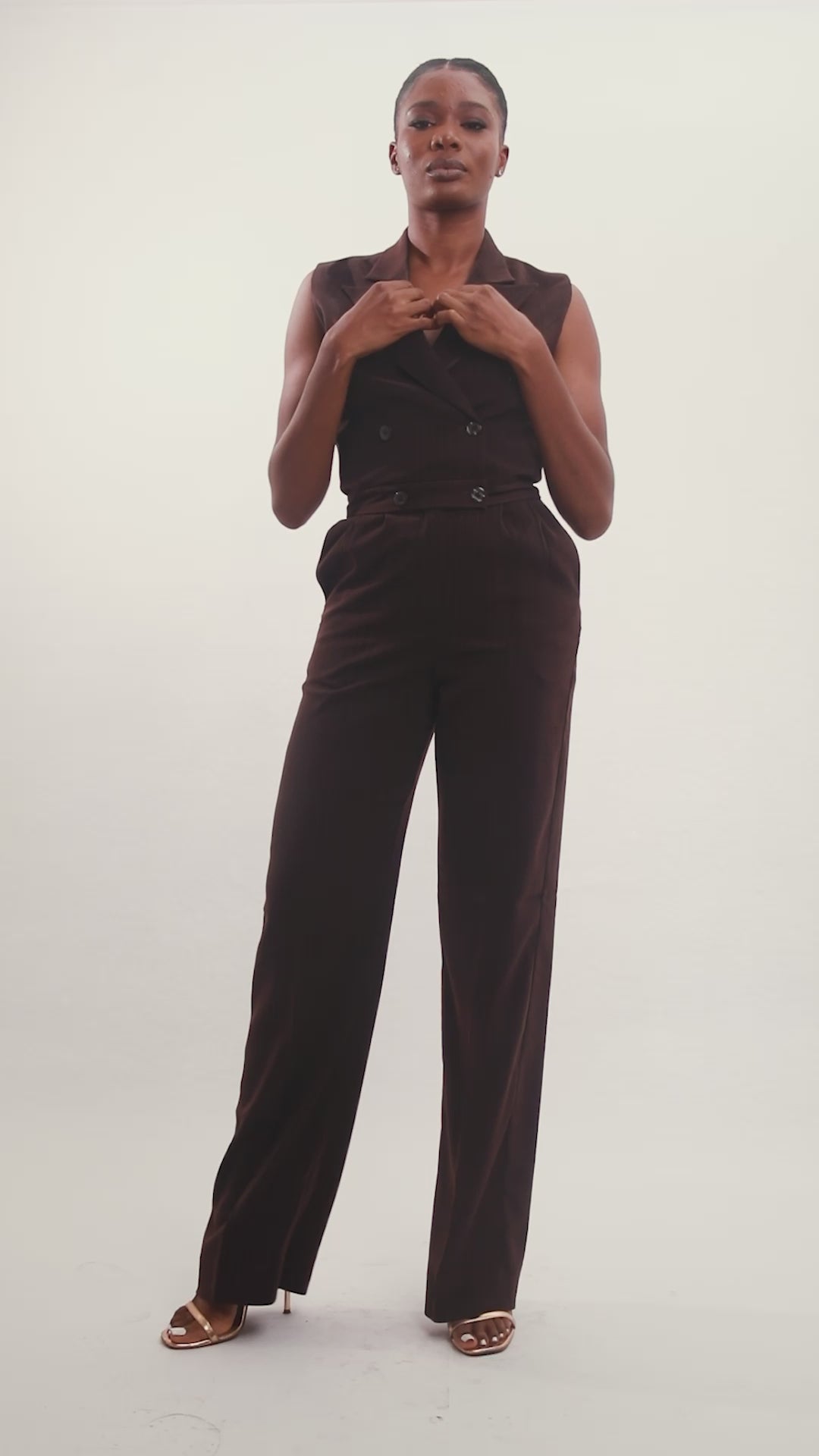 The KARA PANT is a straight cut, full length pants. It features a double front pleat for a touch of luxe elegance and ease. A front zipper closure to ensure a sleek, tailored fit. Designed for comfort, this pant is the perfect addition to elevate your wardrobe. For a complete look, It can be paired with the KARA double breasted sleeveless Blazer.
