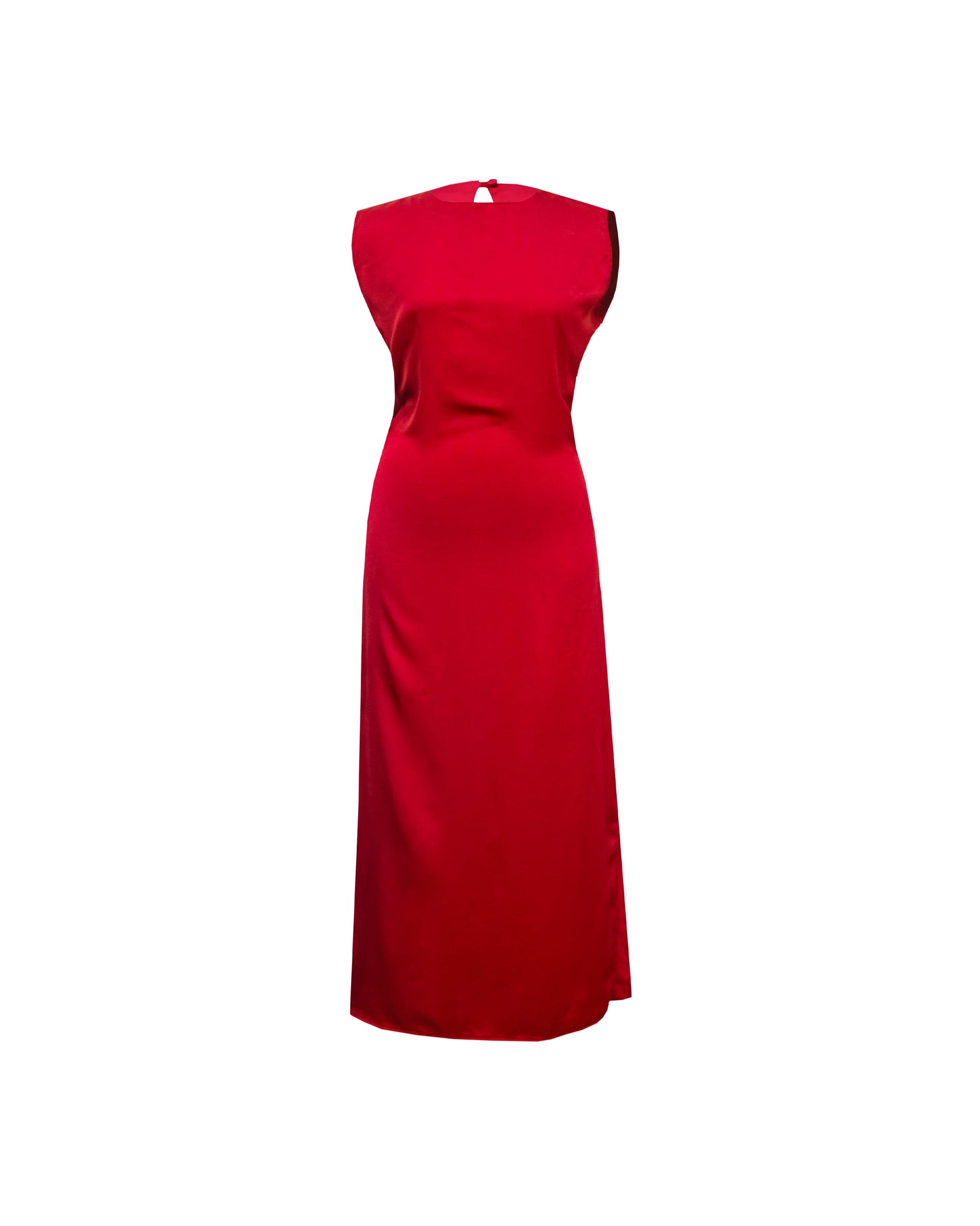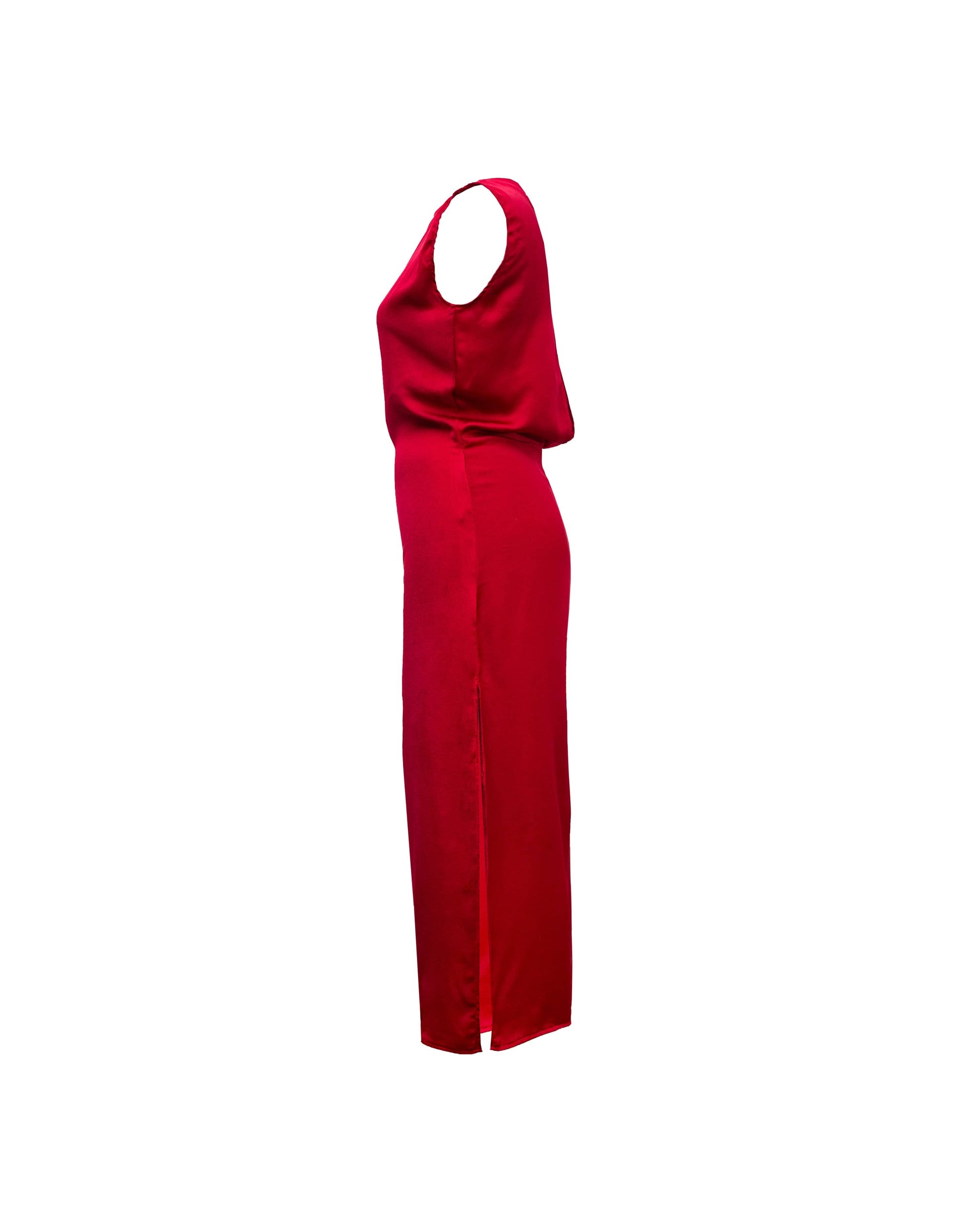 The LANA DRESS is a matte satin finish dress that spells elegance. An embodiment of sophistication and allure. This sleeveless dress is crafted from a plush silk-feel fabric, offering a smooth and graceful drape. It has a single side slit and a back cut-out that adds a touch of subtle sensuality. Designed for both comfort and style, this midi dress is a timeless addition to your wardrobe, perfect for special occasions or elevated everyday wear.
